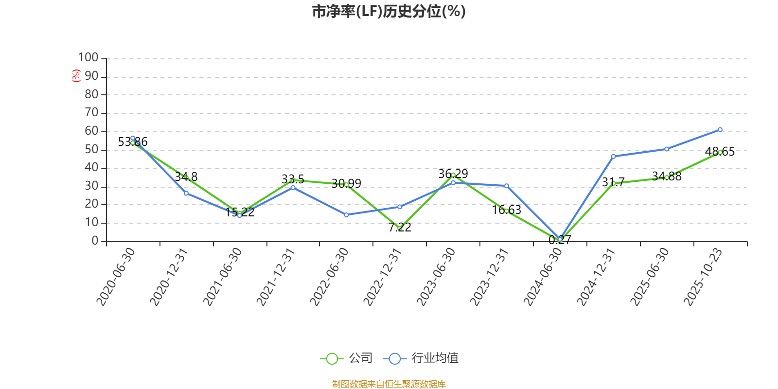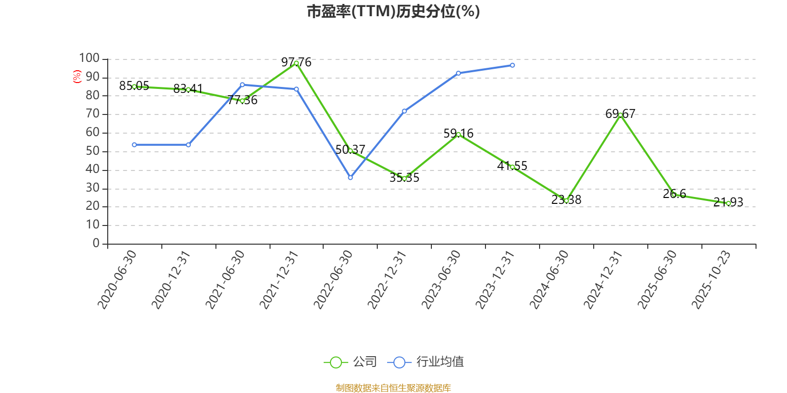市盈率、市净率为负时,不显示当期分位数,会导致折线图中断。