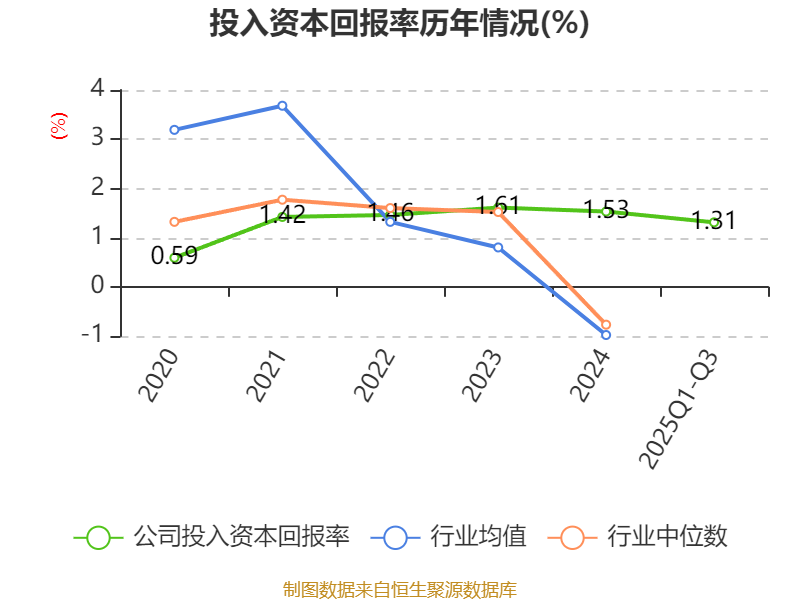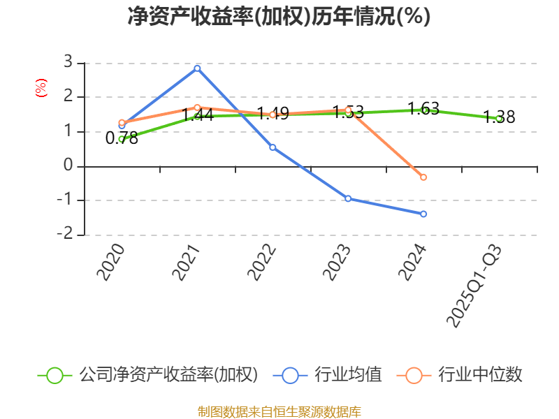 盈利能力方面, 2025年前三季度公司加权平均净资产收益率为1.38%,同比上升0.38个百分点。公司2025年前三季度投入资本回报率为1.31%,较上年同期上升0.34个百分点。