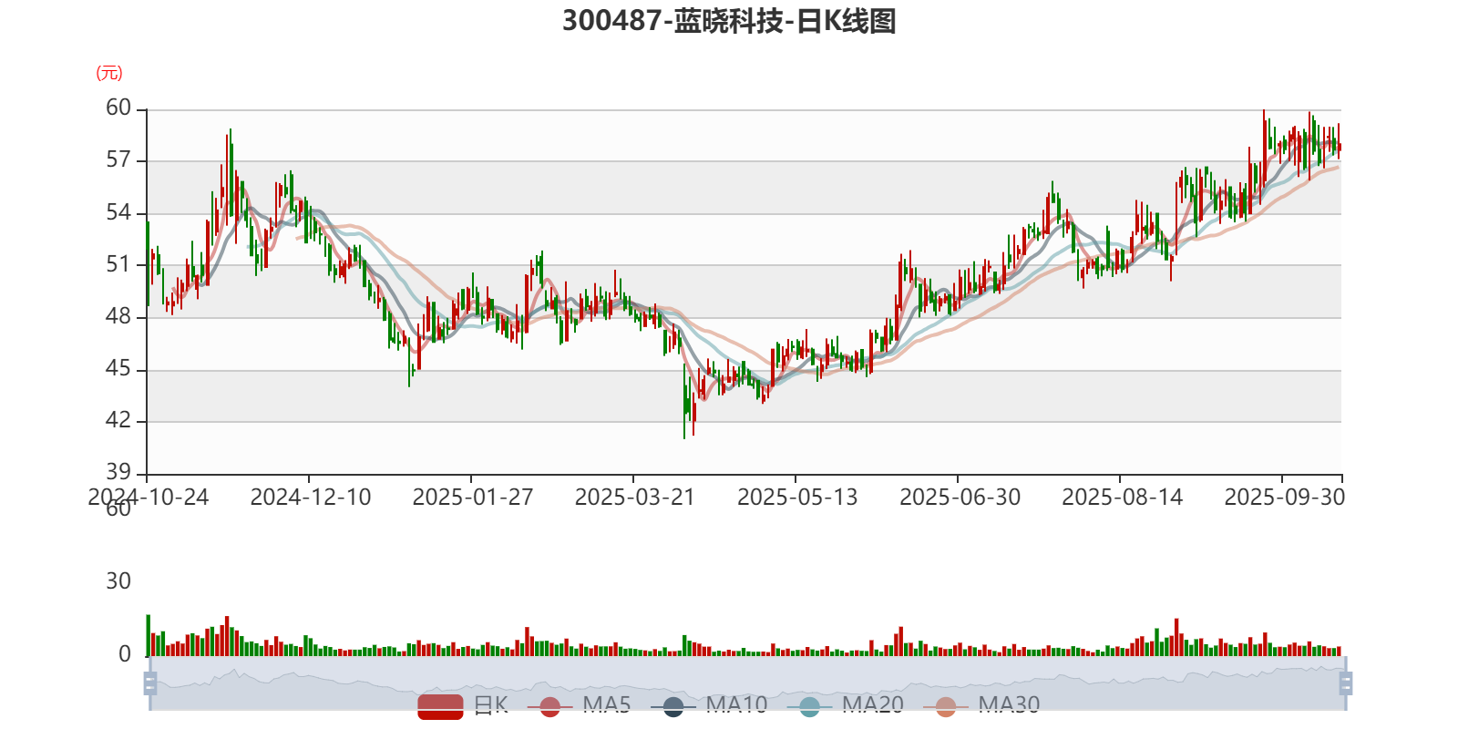 中证智能财讯蓝晓科技(300487)10月24日披露2025年第三季度报告。前三季度公司实现营业总收入19.33亿元,同比增长2.20%;归母净利润6.52亿元,同比增长9.27%;扣非净利润6.39亿元,同比增长10.56%;经营活动产生的现金流量净额为5.39亿元,同比增长20.50%;报告期内,蓝晓科技基本每股收益为1.29元,加权平均净资产收益率为15.71%。