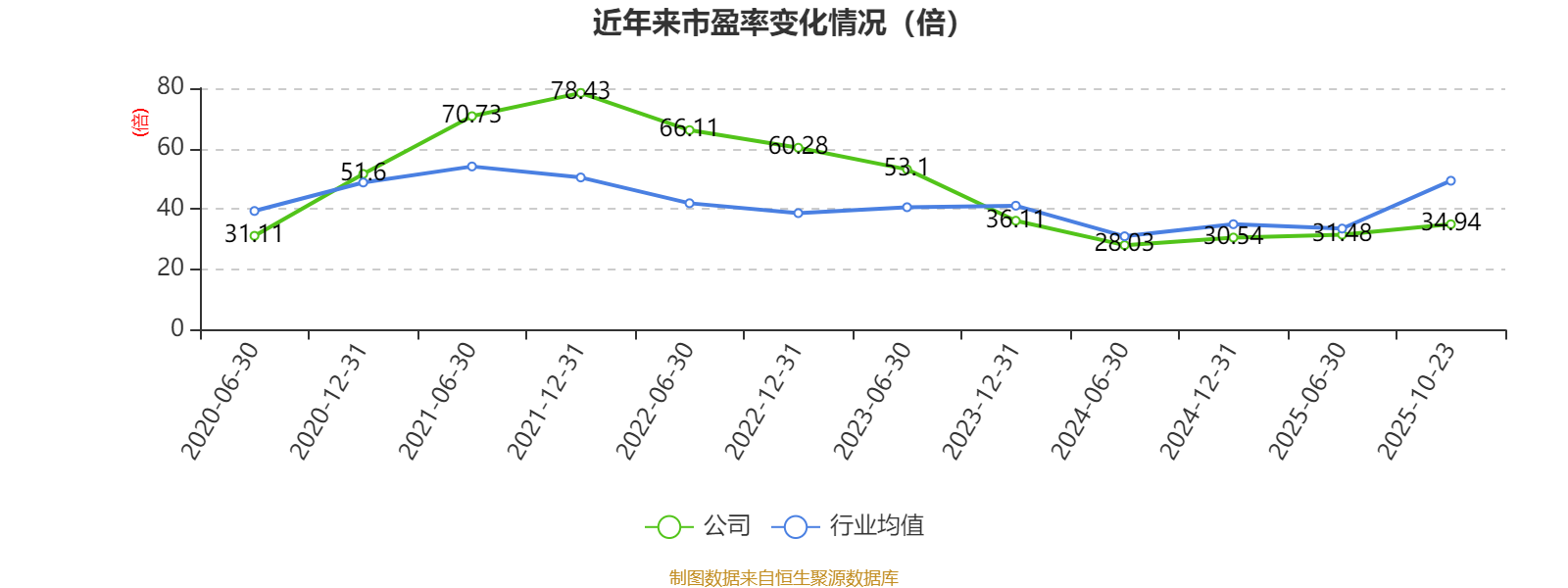 以10月23日收盘价计算,蓝晓科技目前市盈率(TTM)约为34.94倍,市净率(LF)约7.04倍,市销率(TTM)约11.34倍。