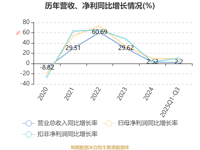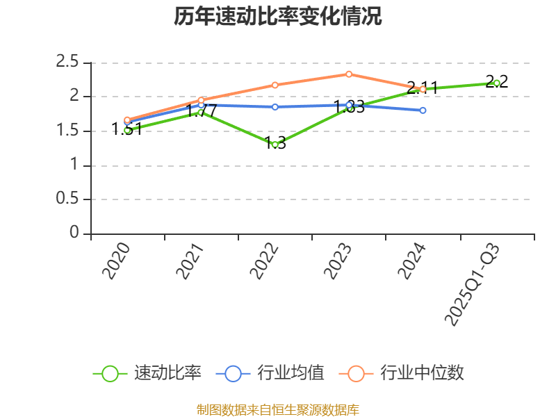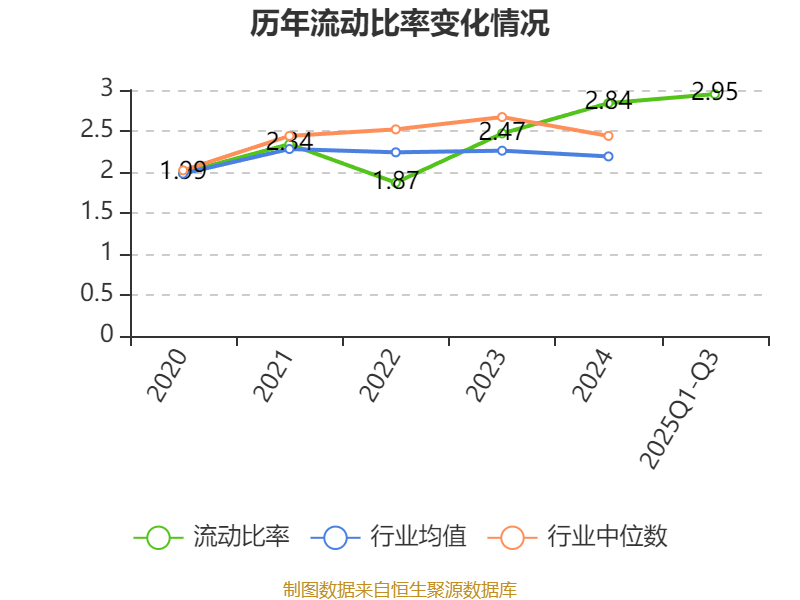 2025年前三季度,公司流动比率为2.95,速动比率为2.2。