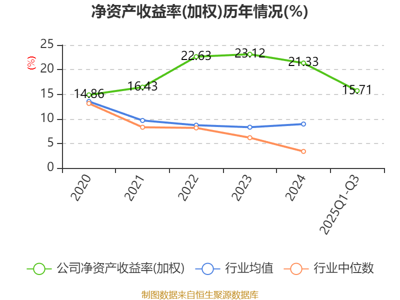 盈利能力方面, 2025年前三季度公司加权平均净资产收益率为15.71%,同比下降0.71个百分点。公司2025年前三季度投入资本回报率为14.19%,较上年同期下降0.7个百分点。