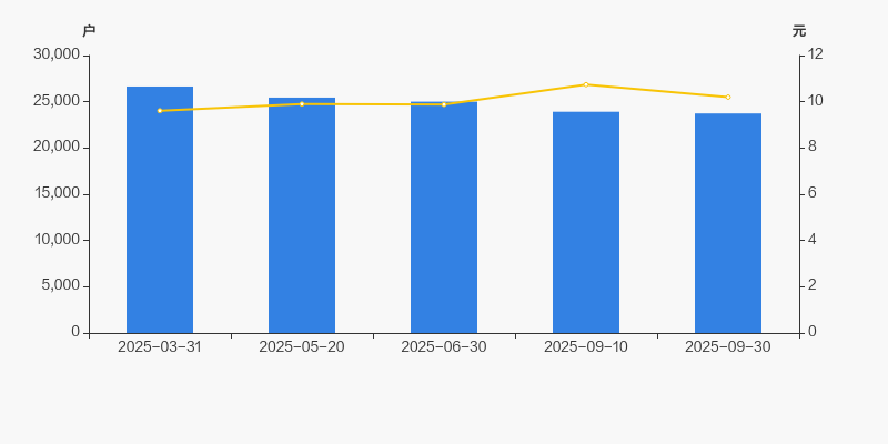 2025年3月31日至今,公司股东户数显著下降,区间跌幅为10.92%。2025年3月31日至2025年9月30日区间股价上涨6.13%。