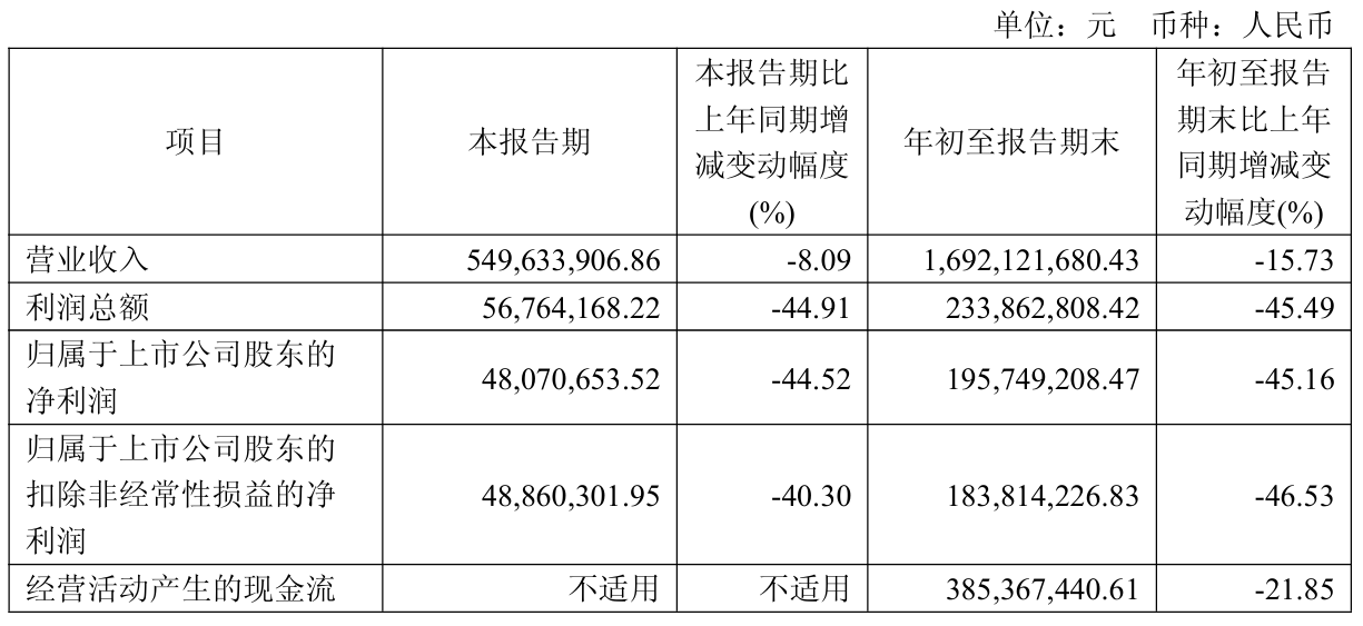 10月23日晚间,江盐集团(601065)公布2025年三季报,公司营业收入为16.9亿元,同比下降15.7%;归母净利润为1.96亿元,同比下降45.2%;扣非归母净利润为1.84亿元,同比下降46.5%;经营现金流净额为3.85亿元,同比下降21.9%。