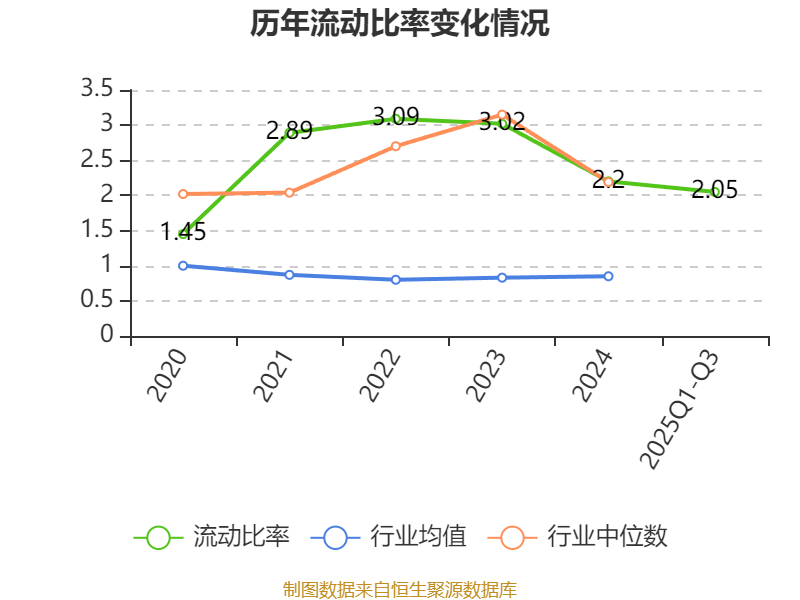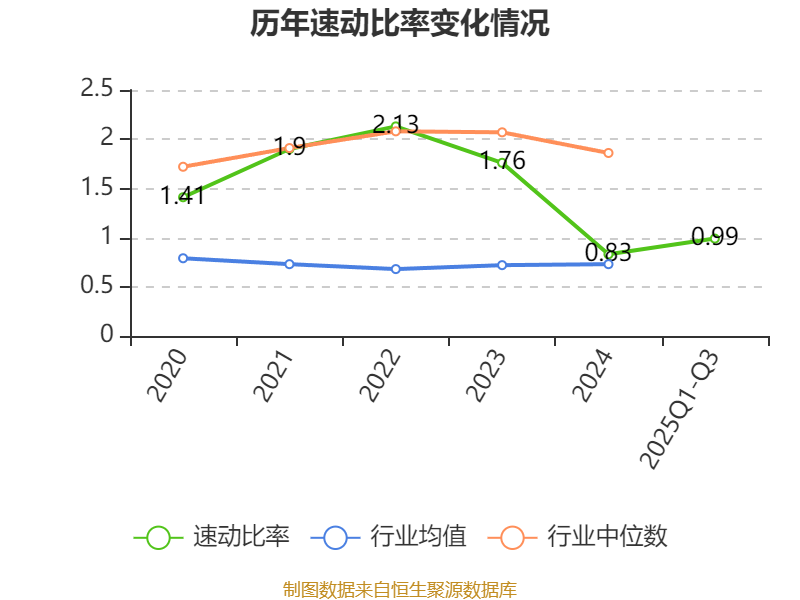 2025年前三季度,公司流动比率为2.05,速动比率为0.99。