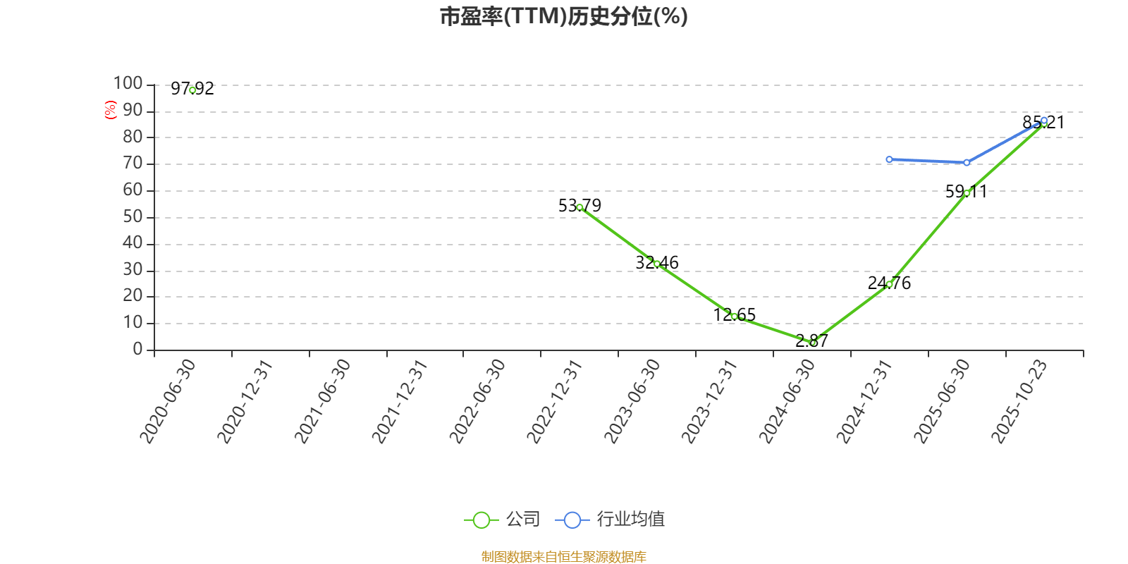 市盈率、市净率为负时,不显示当期分位数,会导致折线图中断。