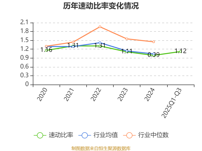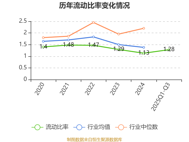 2025年前三季度,公司流动比率为1.28,速动比率为1.12。