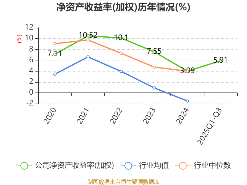 盈利能力方面, 2025年前三季度公司加权平均净资产收益率为5.91%,同比上升0.75个百分点。公司2025年前三季度投入资本回报率为3.89%,较上年同期上升0.55个百分点。