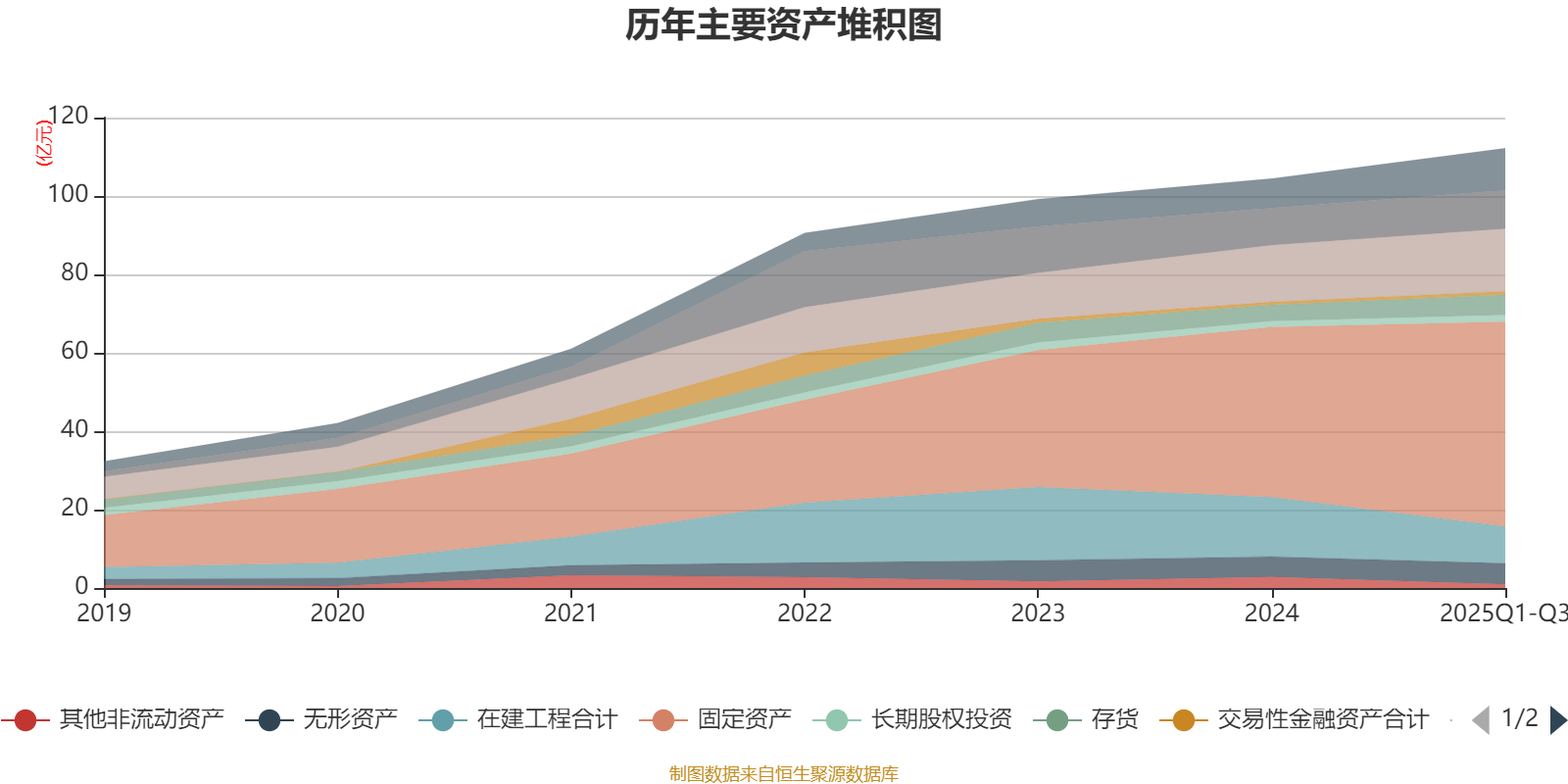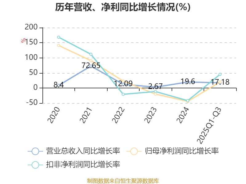 资产重大变化方面,截至2025年三季度末,公司在建工程合计较上年末减少37.96%,占公司总资产比重下降6.12个百分点;固定资产较上年末增加20.5%,占公司总资产比重上升5.07个百分点;应收款项融资较上年末增加138.57%,占公司总资产比重上升1.91个百分点;其他非流动资产较上年末减少67.38%,占公司总资产比重下降1.89个百分点。
