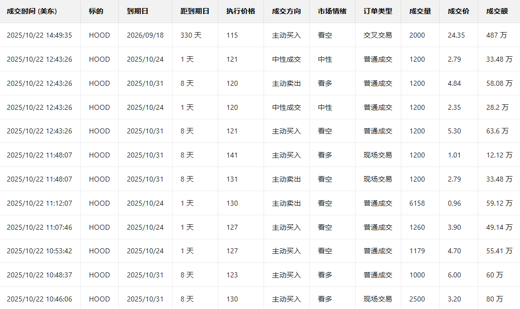 2、 Robinhood上一交易日跌3.5%,前一日认沽/认购比例略有上行,成交量上行,多空较为均衡。