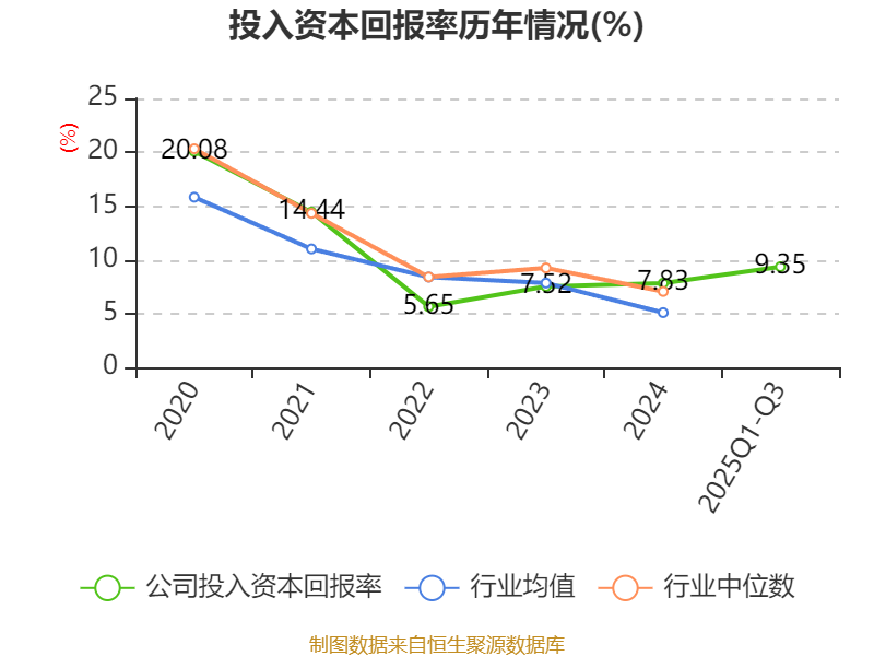 盈利能力方面, 2025年前三季度公司加权平均净资产收益率为11.64%,同比上升6.16个百分点。公司2025年前三季度投入资本回报率为9.35%,较上年同期上升4.95个百分点。