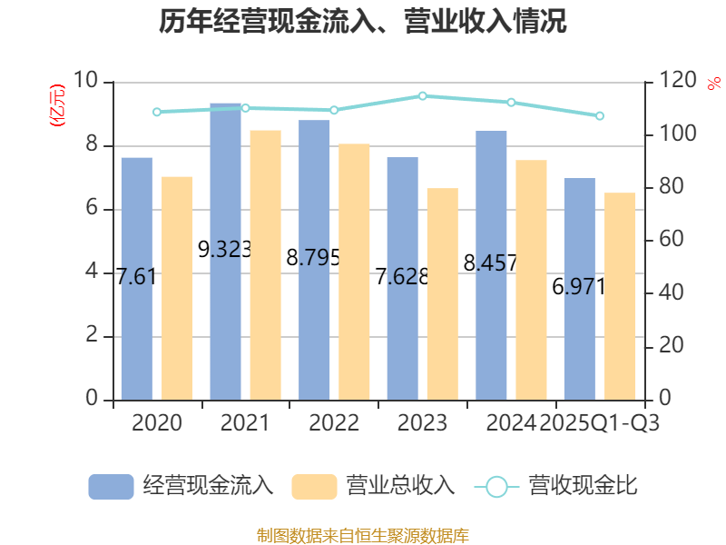 2025年前三季度,公司流动比率为2.65,速动比率为2.08。