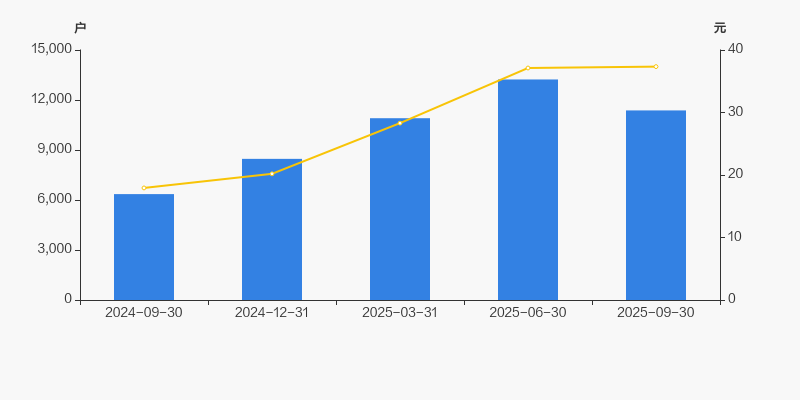 2024年9月30日至今,公司股东户数显著大幅增长,区间涨幅达79.05%。2024年9月30日至2025年9月30日区间股价上涨108.29%。