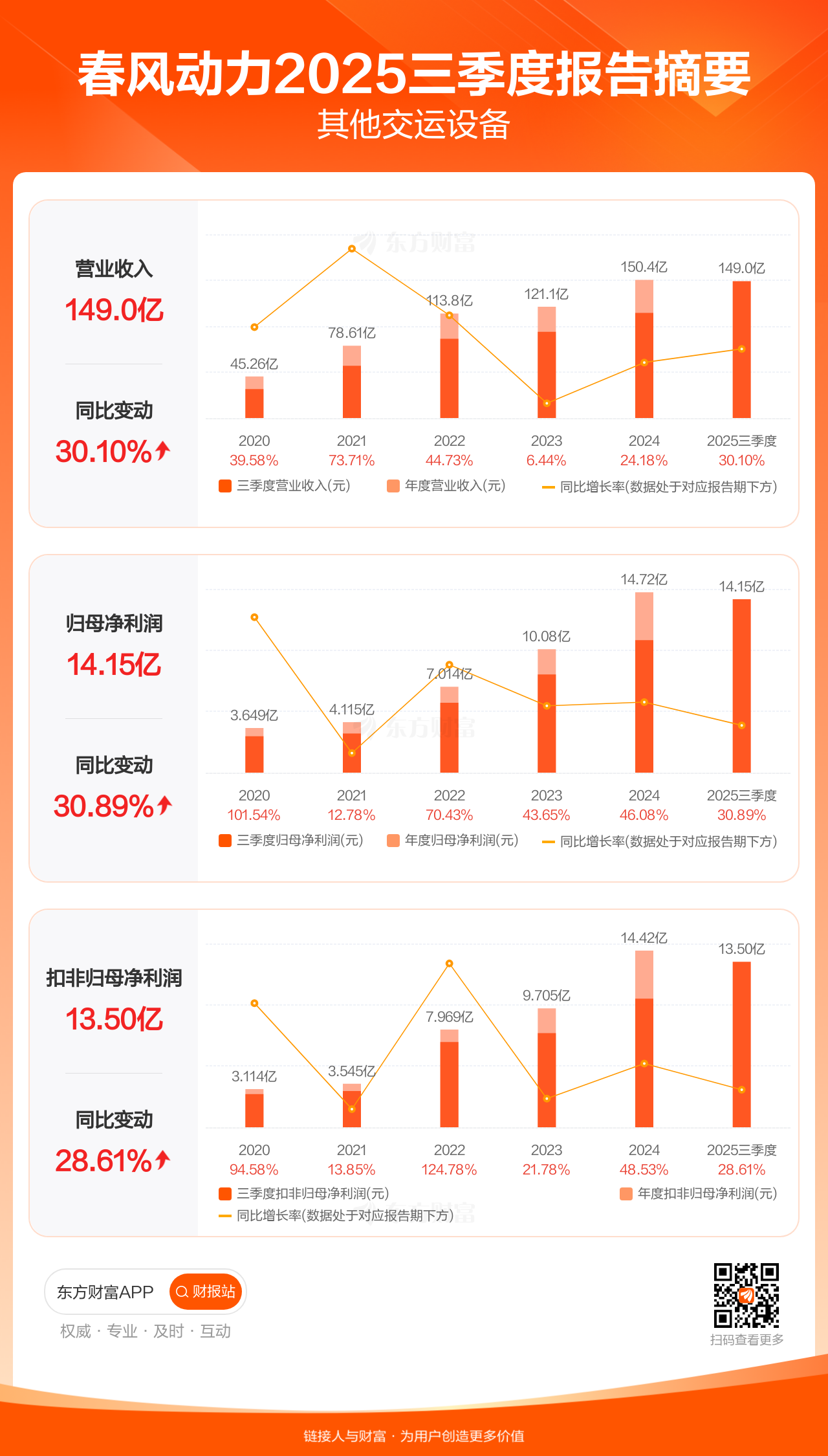 图解财报:春风动力前三季归母净利润14.15亿元,同比增长30.89%