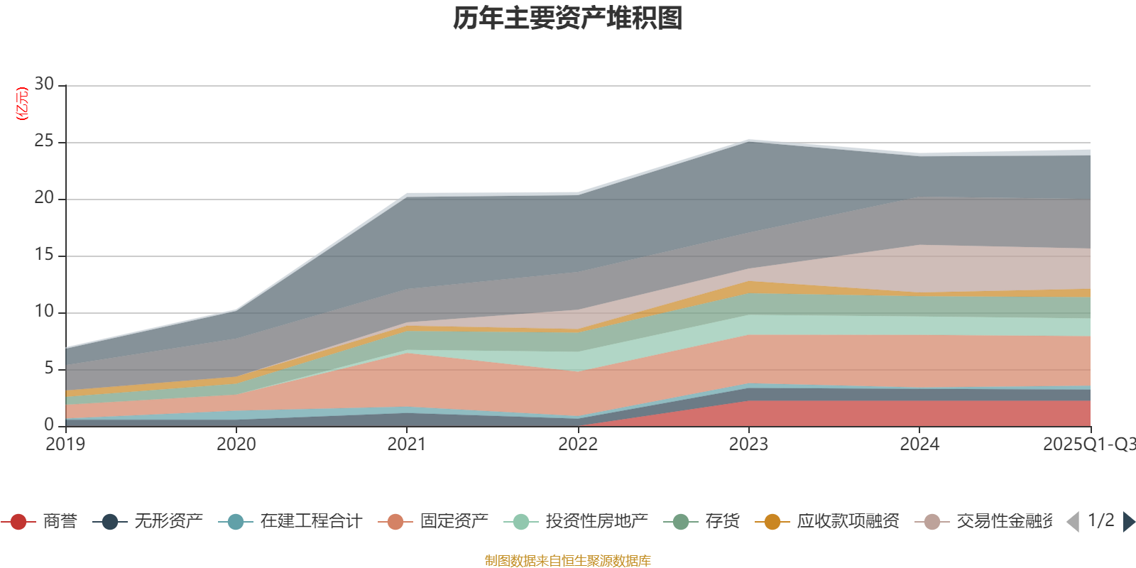 资产重大变化方面,截至2025年三季度末,公司交易性金融资产合计较上年末减少15.48%,占公司总资产比重下降2.89个百分点;应收款项融资较上年末增加120.16%,占公司总资产比重上升1.63个百分点;固定资产较上年末减少5.71%,占公司总资产比重下降1.32个百分点;货币资金较上年末增加8%,占公司总资产比重上升0.99个百分点。