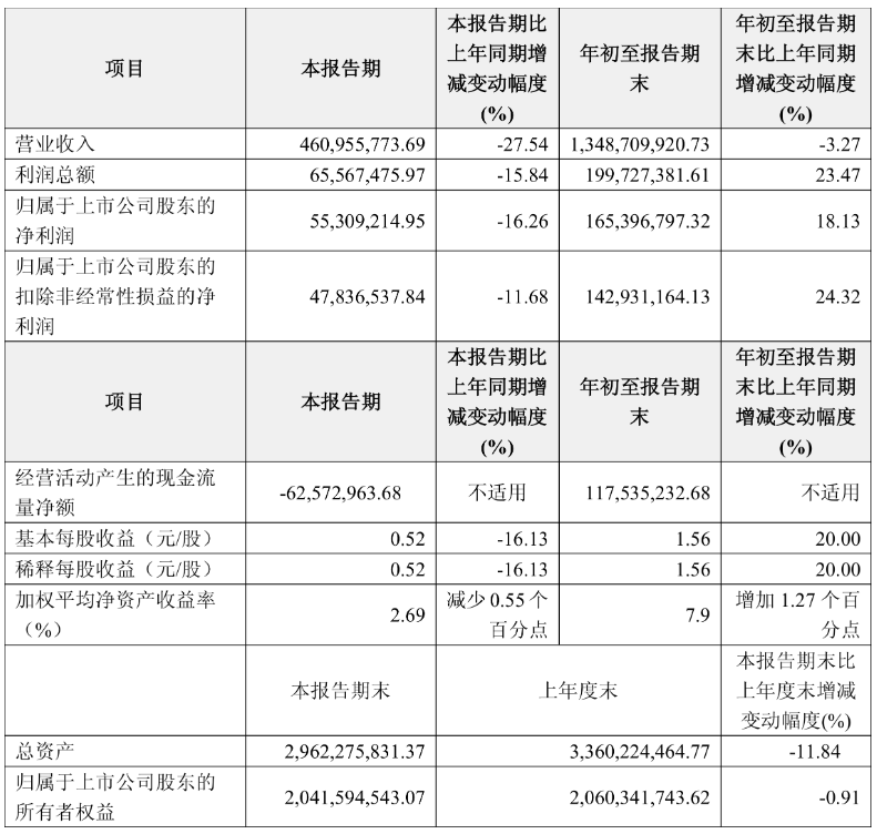 负债重大变化方面,截至2025年三季度末,公司应付票据及应付账款较上年末减少27.01%,占公司总资产比重下降4.96个百分点;短期借款较上年末减少54.53%,占公司总资产比重下降2.16个百分点;应交税费较上年末减少69.91%,占公司总资产比重下降0.72个百分点;其他应付款(含利息和股利)较上年末减少1.6%,占公司总资产比重上升0.39个百分点。