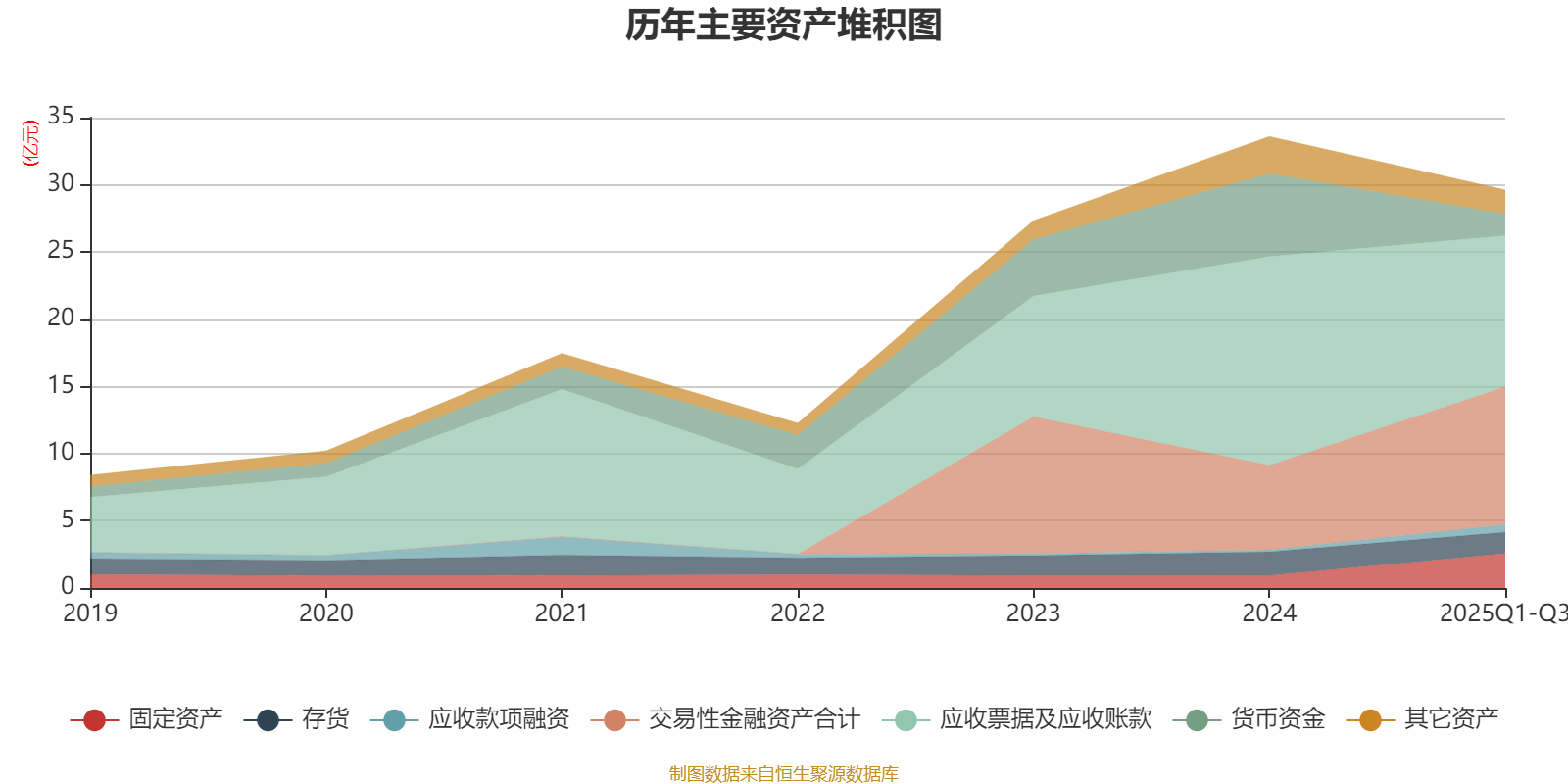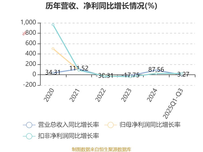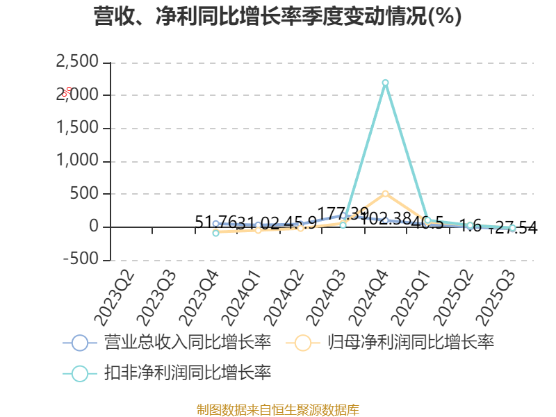 资产重大变化方面,截至2025年三季度末,公司交易性金融资产合计较上年末增加63.51%,占公司总资产比重上升15.98个百分点;货币资金较上年末减少73.54%,占公司总资产比重下降12.88个百分点;应收票据及应收账款较上年末减少27.73%,占公司总资产比重下降8.33个百分点;固定资产较上年末增加179.72%,占公司总资产比重上升5.95个百分点。
