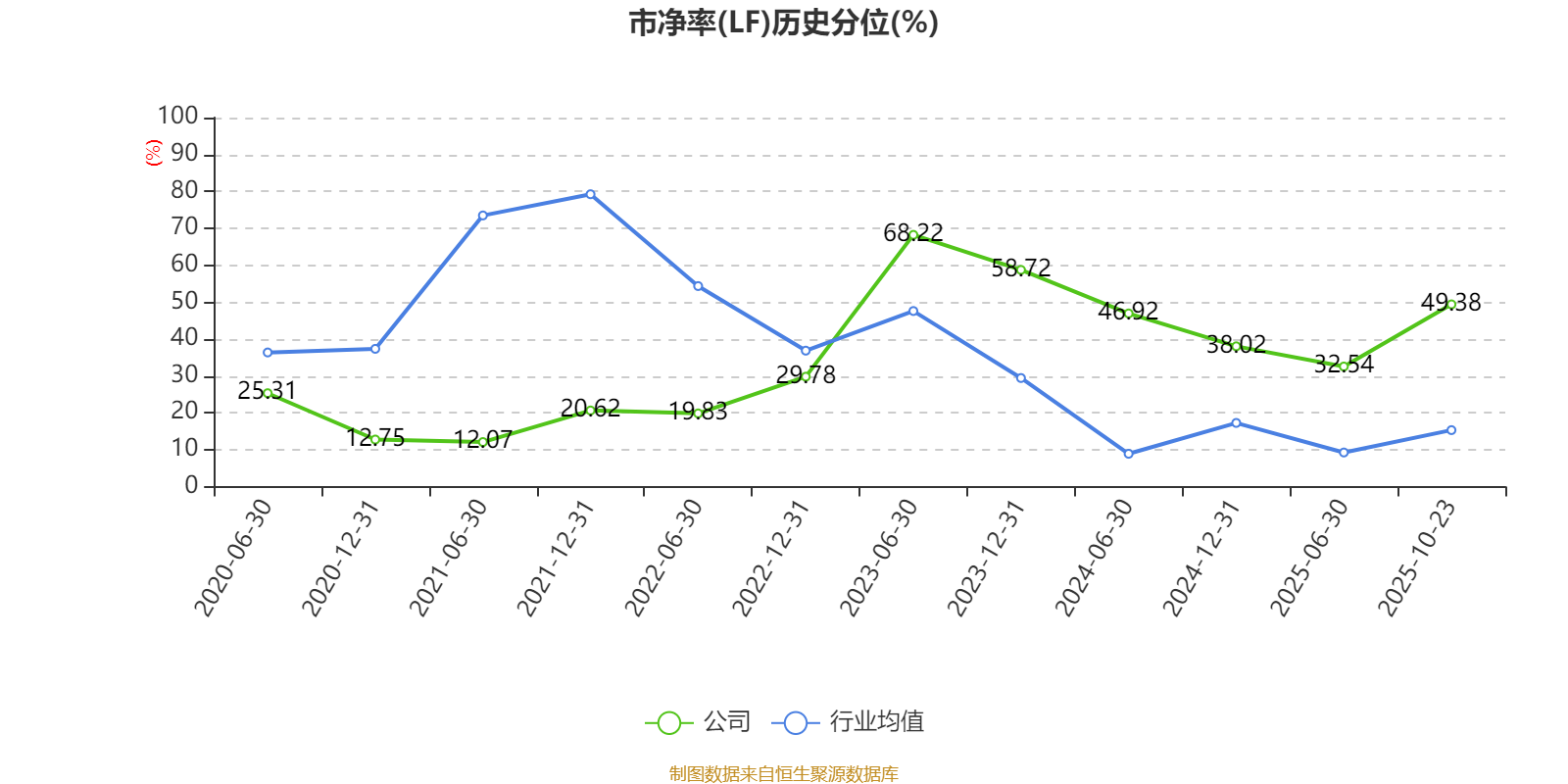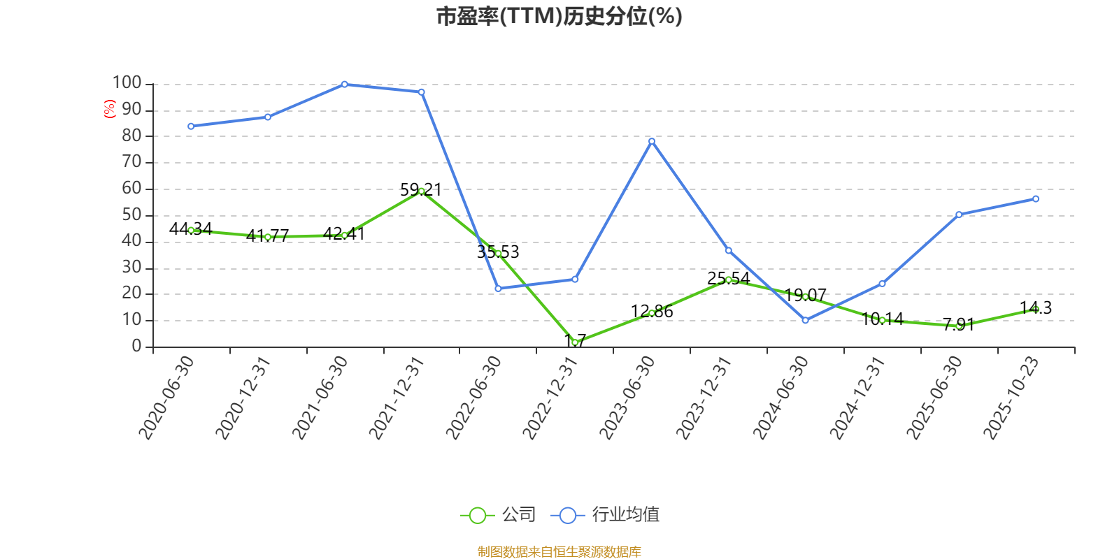 市盈率、市净率为负时,不显示当期分位数,会导致折线图中断。