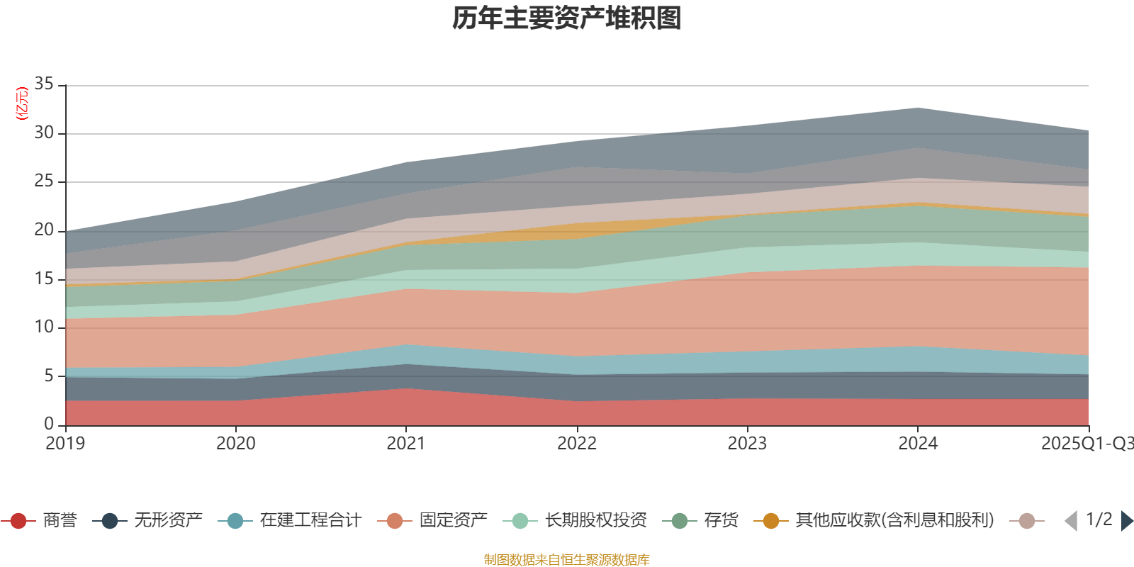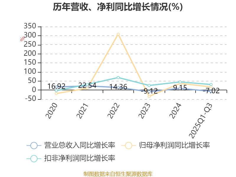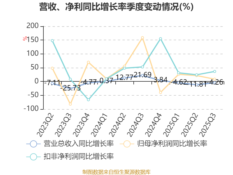 资产重大变化方面,截至2025年三季度末,公司固定资产较上年末增加9.02%,占公司总资产比重上升4.44个百分点;货币资金较上年末减少41.62%,占公司总资产比重下降3.5个百分点;长期股权投资较上年末减少31.9%,占公司总资产比重下降1.95个百分点;在建工程合计较上年末减少25.28%,占公司总资产比重下降1.57个百分点。