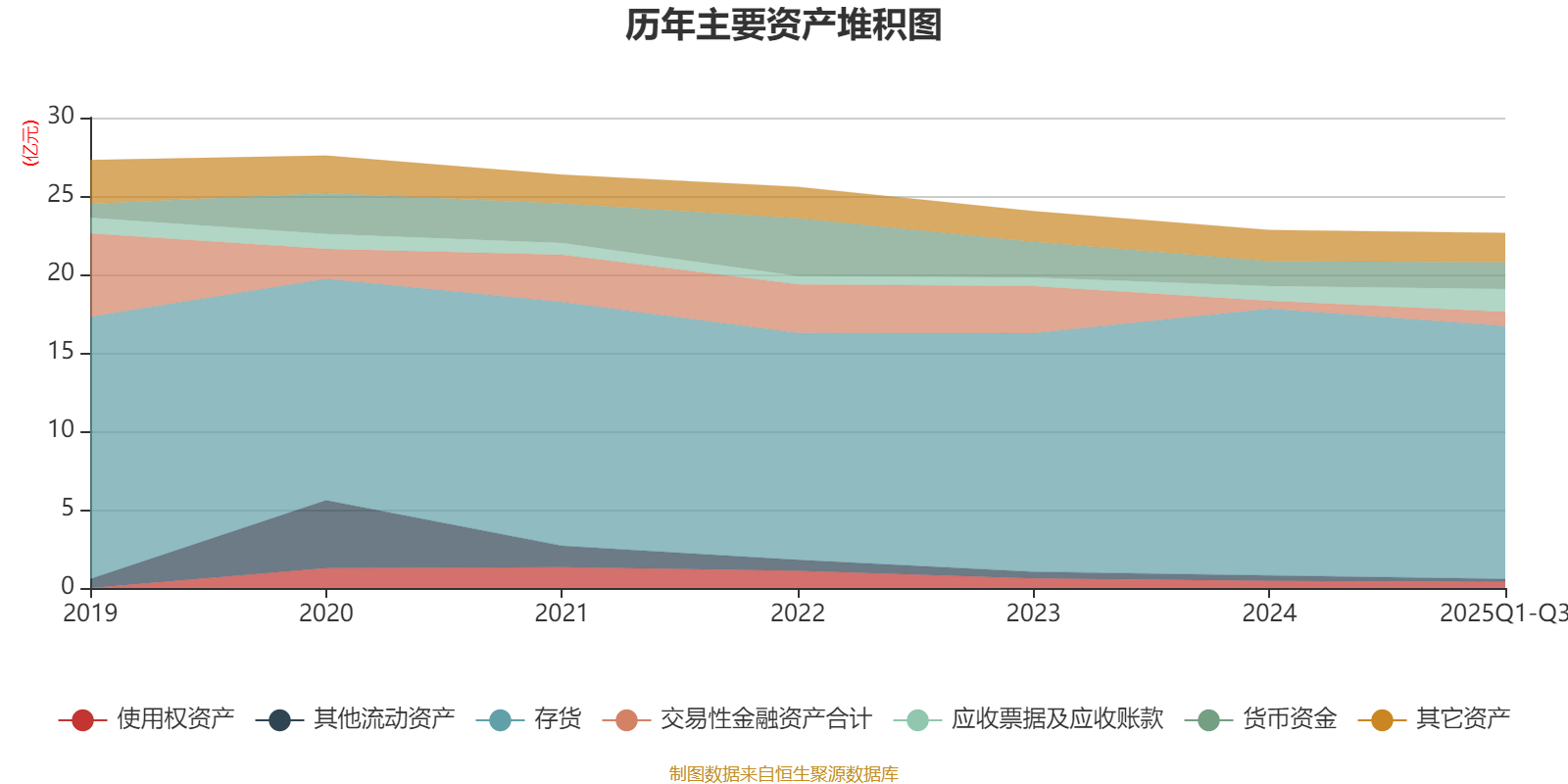 资产重大变化方面,截至2025年三季度末,公司存货较上年末减少5.17%,占公司总资产比重下降3.26个百分点;应收票据及应收账款较上年末增加55.05%,占公司总资产比重上升2.32个百分点;交易性金融资产合计较上年末增加79.92%,占公司总资产比重上升1.79个百分点;其他流动资产较上年末减少45.94%,占公司总资产比重下降0.68个百分点。