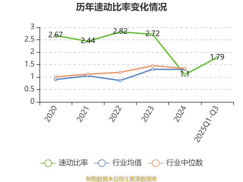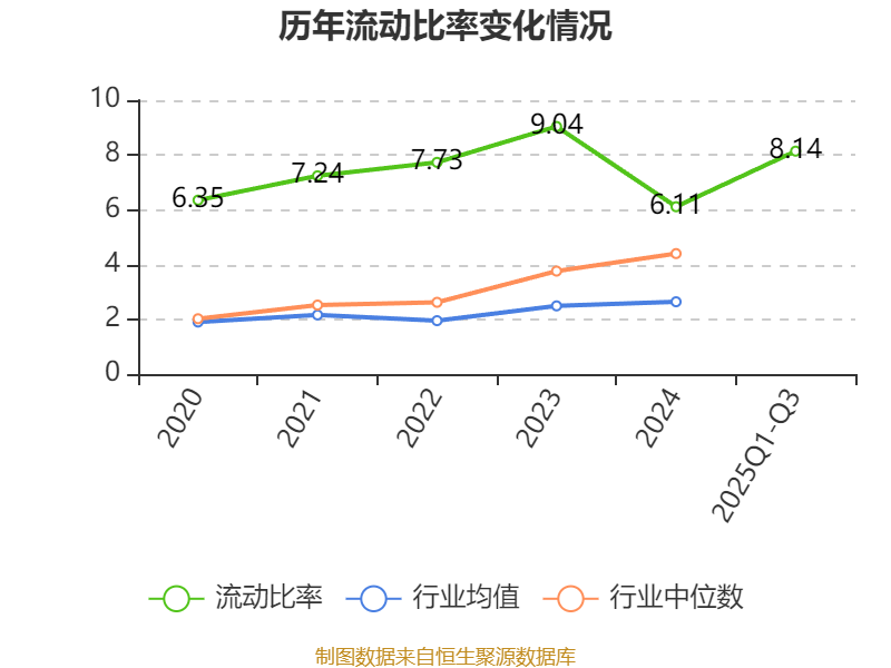 2025年前三季度,公司流动比率为8.14,速动比率为1.79。