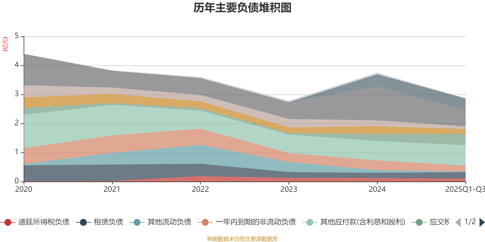 负债重大变化方面,截至2025年三季度末,公司应付票据及应付账款较上年末减少51.99%,占公司总资产比重下降2.62个百分点;应交税费较上年末增加57.72%,占公司总资产比重上升0.63个百分点;一年内到期的非流动负债较上年末减少37.63%,占公司总资产比重下降0.54个百分点;合同负债较上年末减少56.78%,占公司总资产比重下降0.5个百分点。
