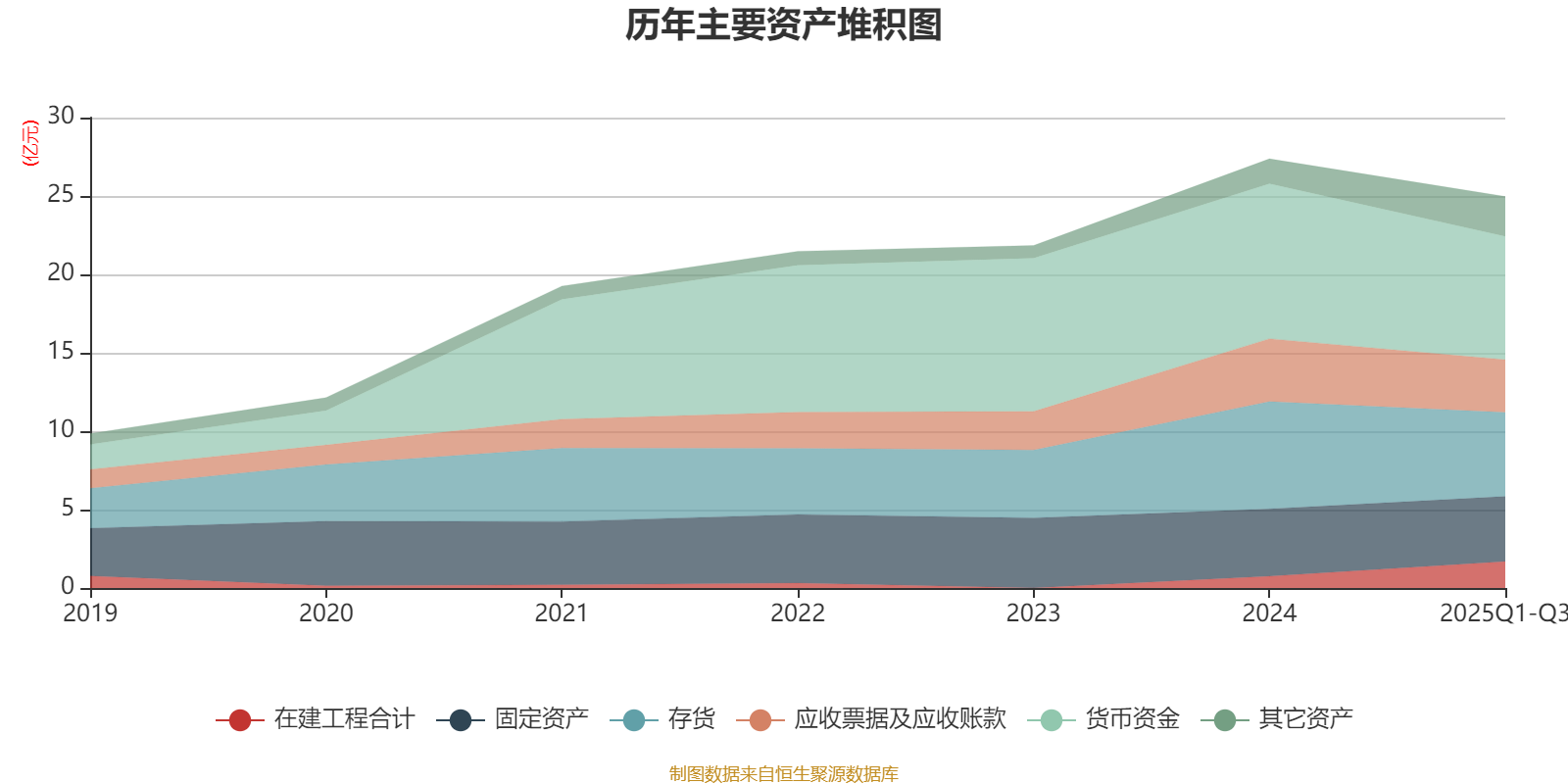 资产重大变化方面,截至2025年三季度末,公司货币资金较上年末减少20.46%,占公司总资产比重下降4.63个百分点;在建工程合计较上年末增加126.15%,占公司总资产比重上升4.02个百分点;交易性金融资产合计占公司总资产的4.01%,上年末为0;存货较上年末减少21.76%,占公司总资产比重下降3.56个百分点。