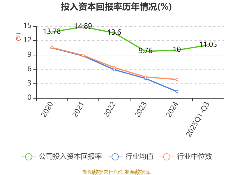 盈利能力方面, 2025年前三季度公司加权平均净资产收益率为11.44%,同比上升2.84个百分点。公司2025年前三季度投入资本回报率为11.05%,较上年同期上升3.73个百分点。