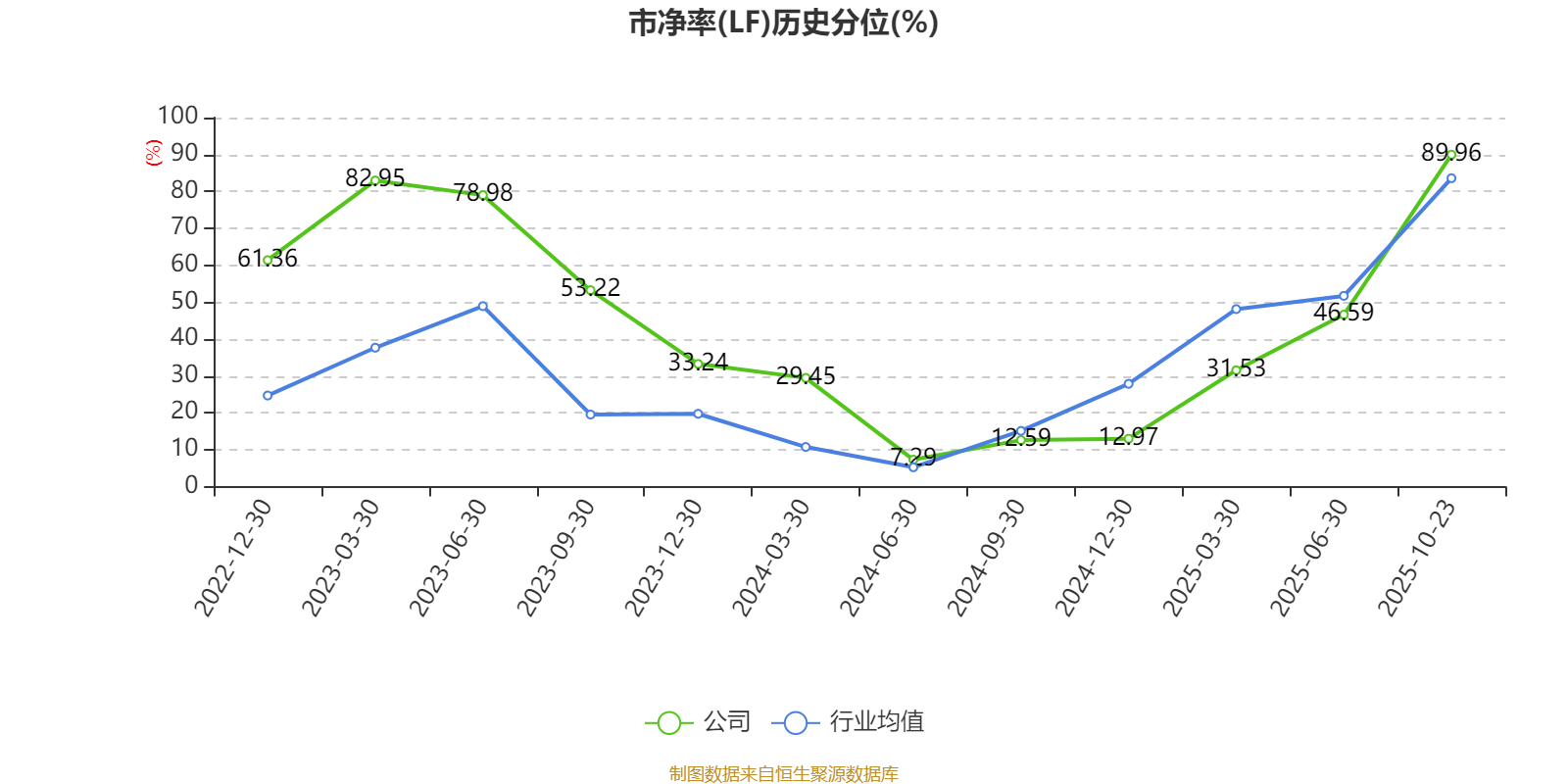 市盈率、市净率为负时,不显示当期分位数,会导致折线图中断。