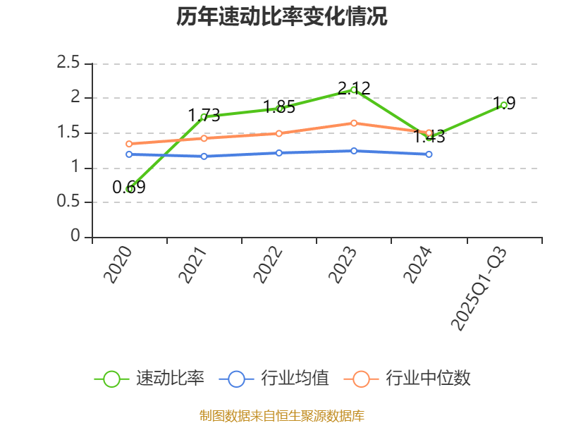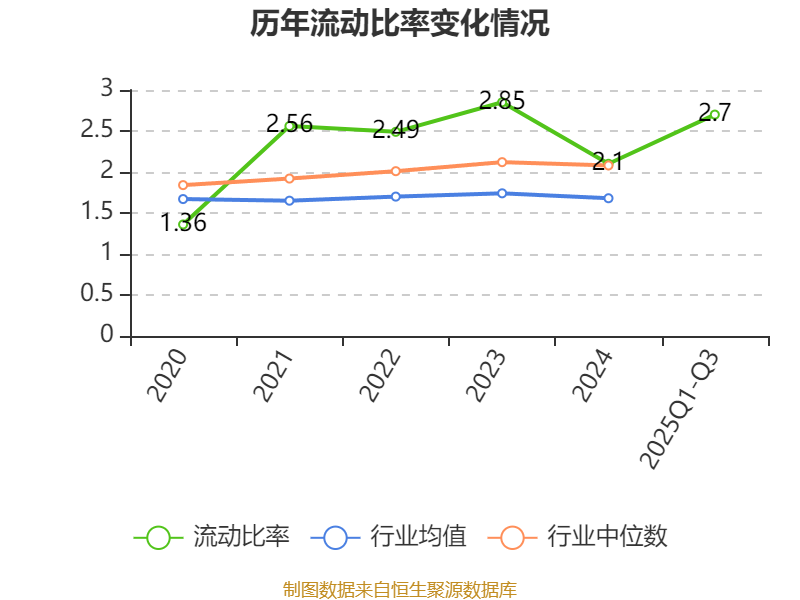 2025年前三季度,公司流动比率为2.7,速动比率为1.9。