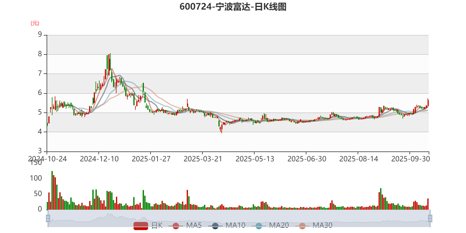 以10月23日收盘价计算,宁波富达目前市盈率(TTM)约为37.25倍,市净率(LF)约2.86倍,市销率(TTM)约5.23倍。