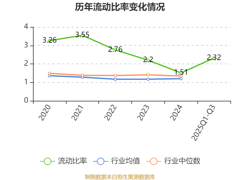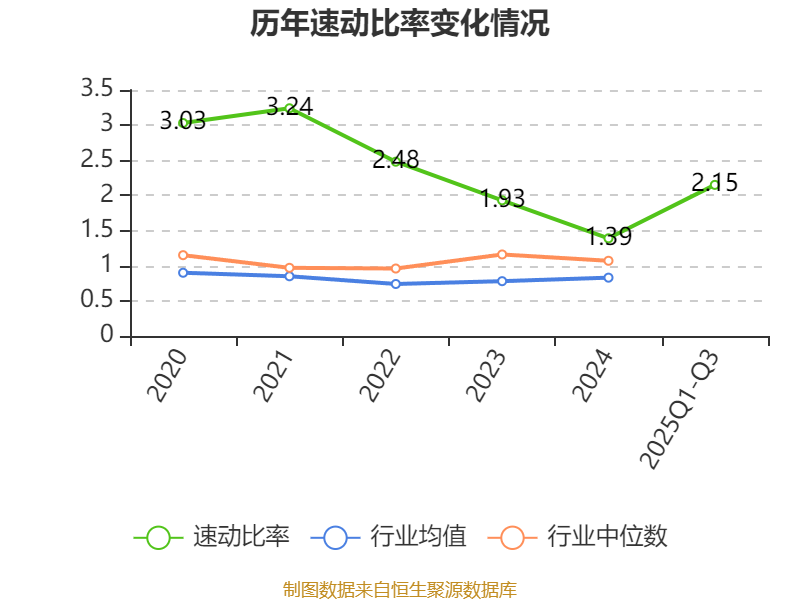 2025年前三季度,公司流动比率为2.32,速动比率为2.15。