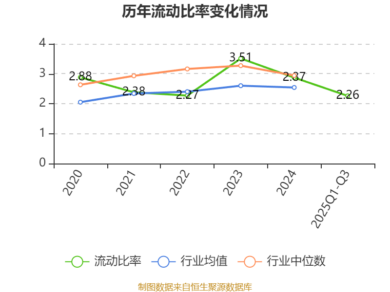 2025年前三季度,公司流动比率为2.26,速动比率为1.76。