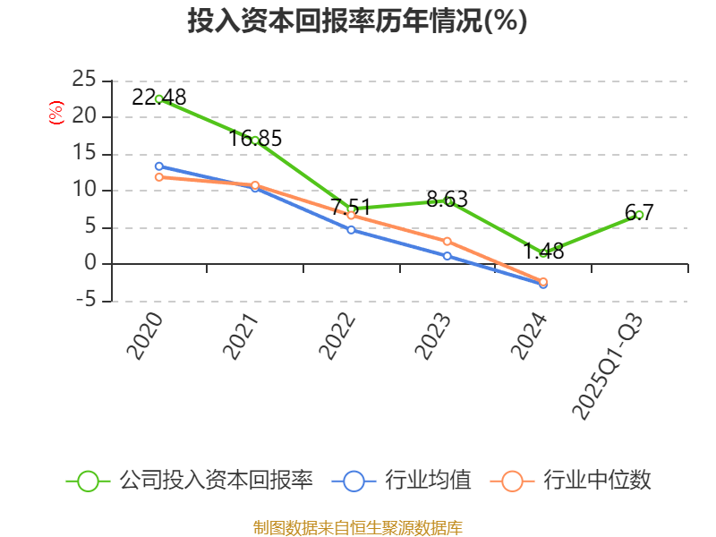 盈利能力方面, 2025年前三季度公司加权平均净资产收益率为7.2%,同比上升8.05个百分点。公司2025年前三季度投入资本回报率为6.7%,较上年同期上升7.88个百分点。