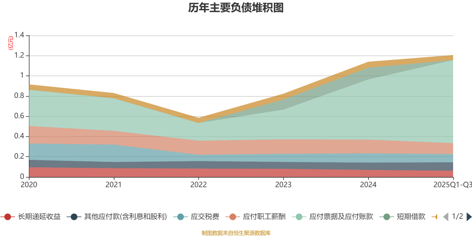负债重大变化方面,截至2025年三季度末,公司应付票据及应付账款较上年末增加38%,占公司总资产比重上升2.07个百分点;短期借款较上年末减少100%,占公司总资产比重下降0.93个百分点;应付职工薪酬较上年末减少20.37%,占公司总资产比重下降0.19个百分点;其他应付款(含利息和股利)较上年末增加15.58%,占公司总资产比重上升0.12个百分点。