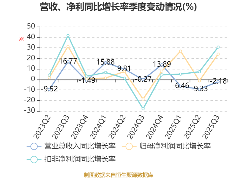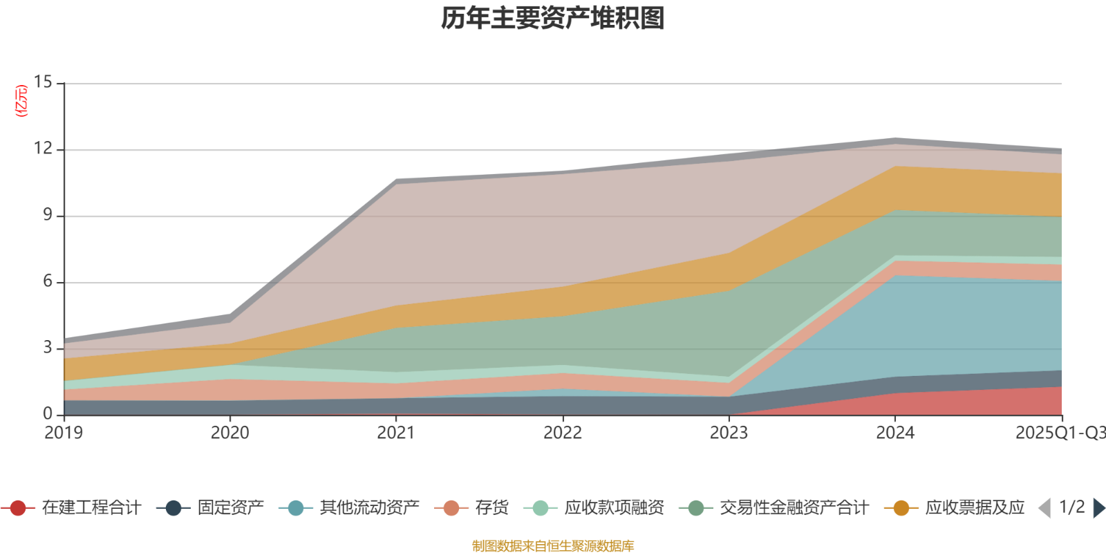 资产重大变化方面,截至2025年三季度末,公司其他流动资产较上年末减少11.82%,占公司总资产比重下降3.03个百分点;在建工程合计较上年末增加30.02%,占公司总资产比重上升2.74个百分点;交易性金融资产合计较上年末减少11.73%,占公司总资产比重下降1.34个百分点;应收款项融资较上年末增加40.76%,占公司总资产比重上升0.91个百分点。