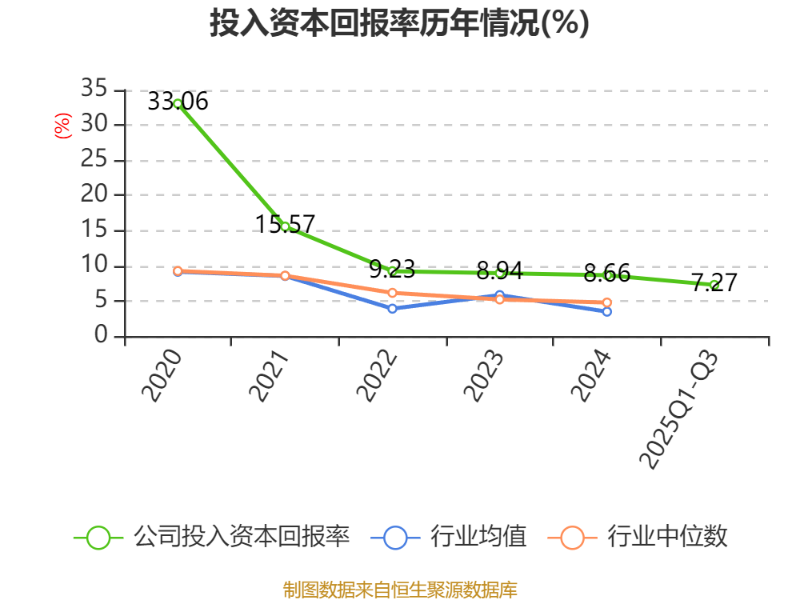 盈利能力方面, 2025年前三季度公司加权平均净资产收益率为7.48%,同比上升0.91个百分点。公司2025年前三季度投入资本回报率为7.27%,较上年同期上升1.04个百分点。
