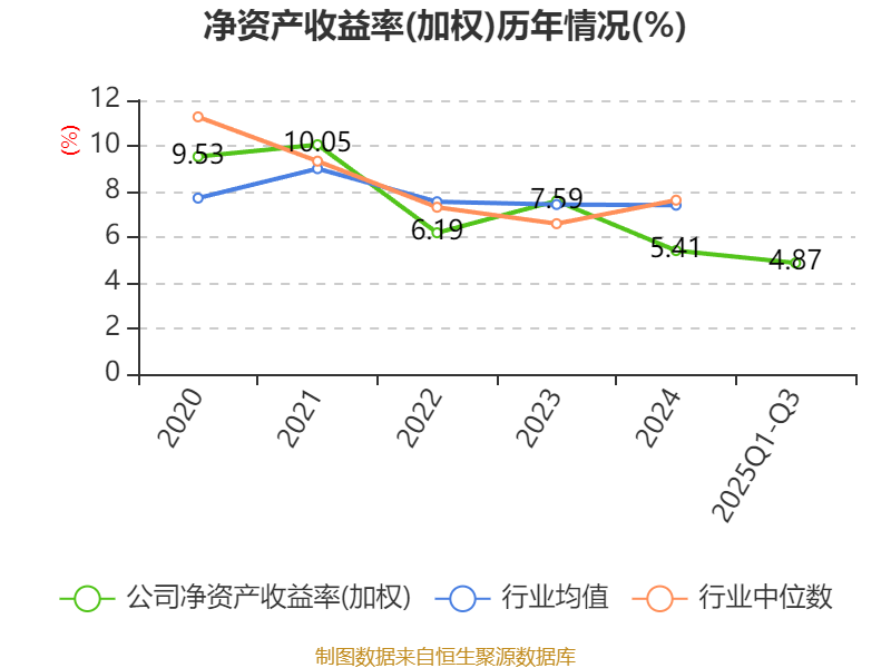 盈利能力方面, 2025年前三季度公司加权平均净资产收益率为4.87%,同比上升1.24个百分点。公司2025年前三季度投入资本回报率为4.49%,较上年同期上升1.08个百分点。