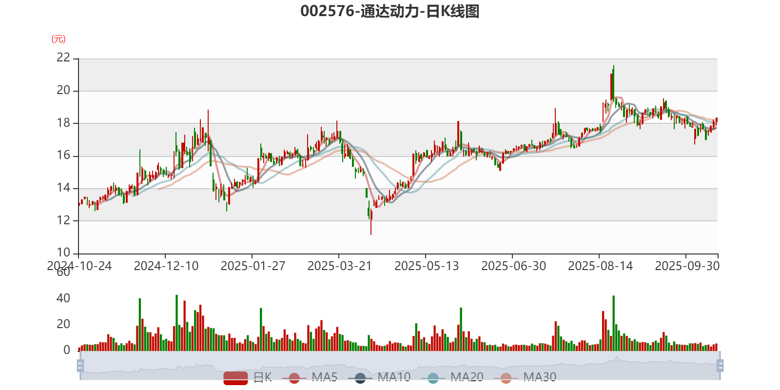 中证智能财讯通达动力(002576)10月24日披露2025年第三季度报告。前三季度公司实现营业总收入14.13亿元,同比增长12.12%;归母净利润6241.84万元,同比增长41.24%;扣非净利润5829.79万元,同比增长42.69%;经营活动产生的现金流量净额为5240.45万元,同比增长34.75%;报告期内,通达动力基本每股收益为0.3781元,加权平均净资产收益率为4.87%。
