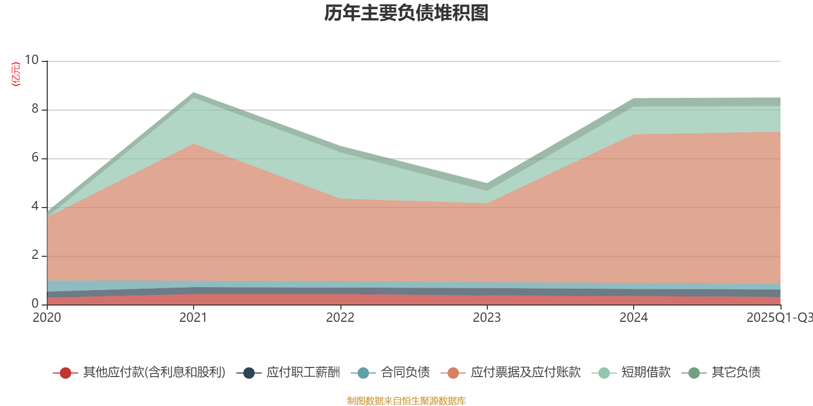 负债重大变化方面,截至2025年三季度末,公司短期借款较上年末减少7.9%,占公司总资产比重下降0.55个百分点;其他应付款(含利息和股利)较上年末减少9.34%,占公司总资产比重下降0.19个百分点;合同负债较上年末减少3.92%,占公司总资产比重下降0.08个百分点;应付票据及应付账款较上年末增加2.21%,占公司总资产比重下降0.08个百分点。
