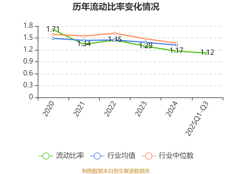 2025年前三季度,公司流动比率为1.12,速动比率为0.8。
