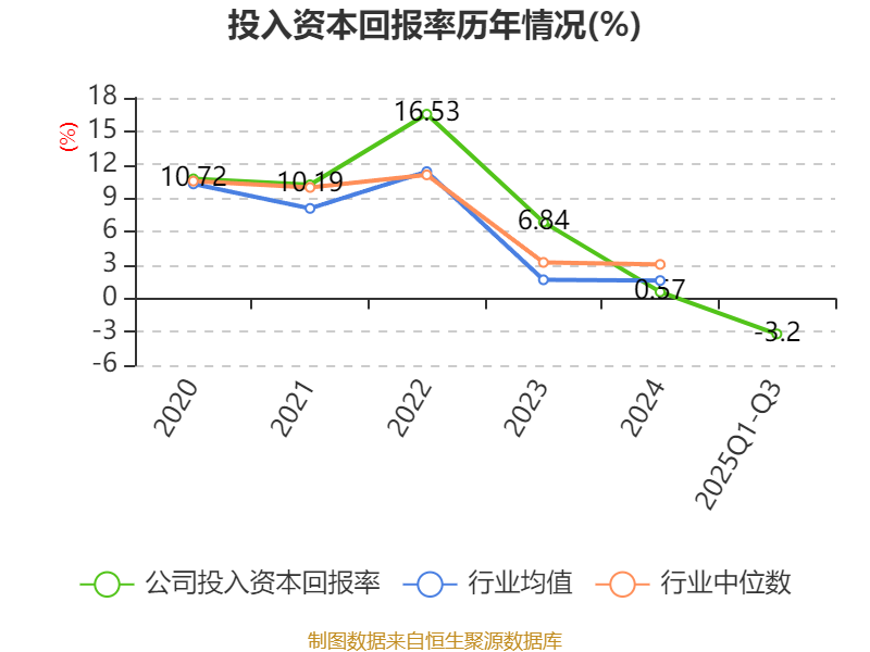 盈利能力方面, 2025年前三季度公司加权平均净资产收益率为-6.78%,同比下降8个百分点。公司2025年前三季度投入资本回报率为-3.2%,较上年同期下降4.28个百分点。