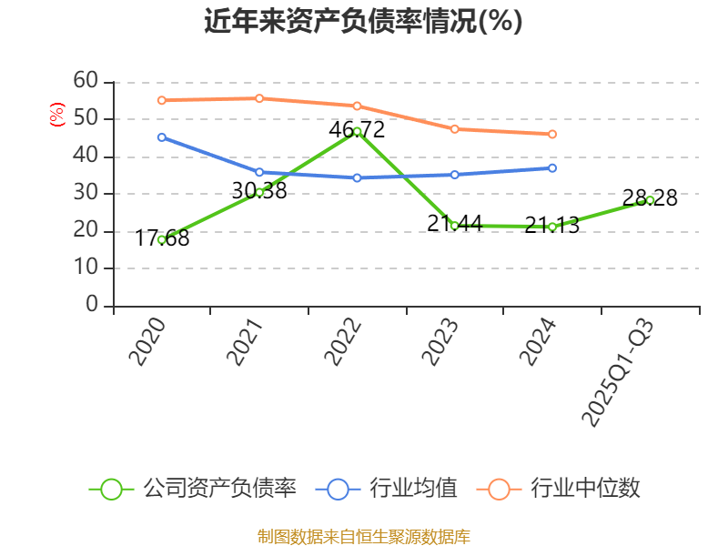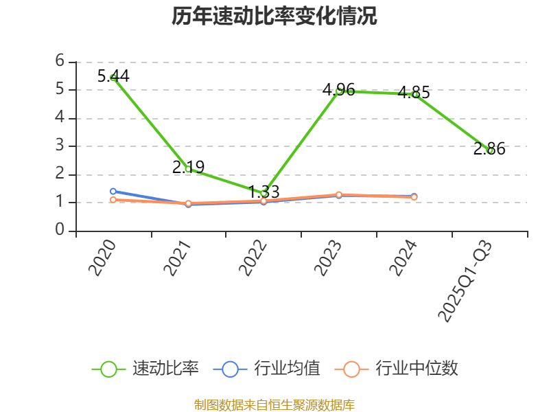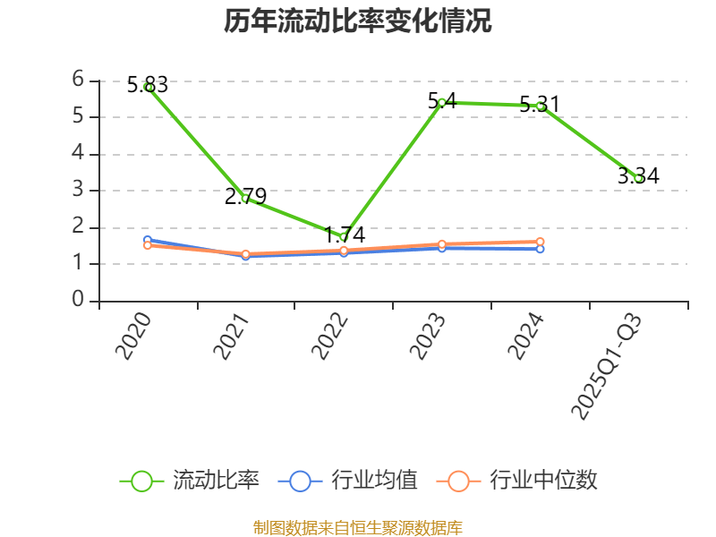 2025年前三季度,公司流动比率为3.34,速动比率为2.86。