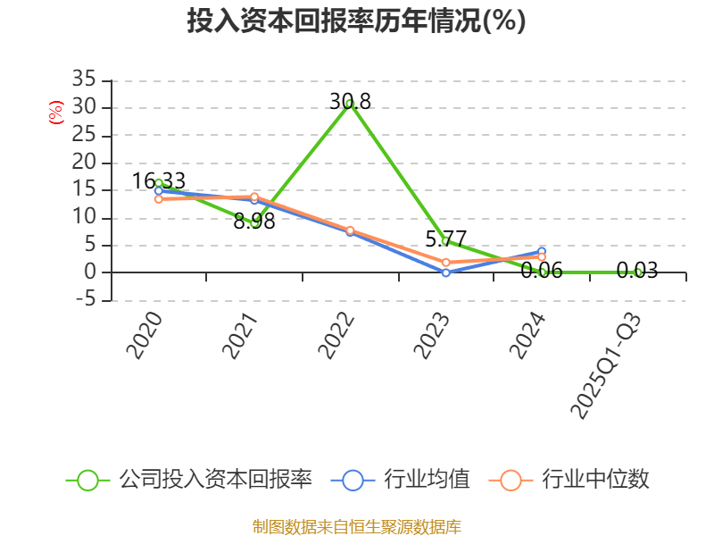 盈利能力方面, 2025年前三季度公司加权平均净资产收益率为0.52%,同比上升0.12个百分点。公司2025年前三季度投入资本回报率为0.03%,较上年同期下降0.12个百分点。
