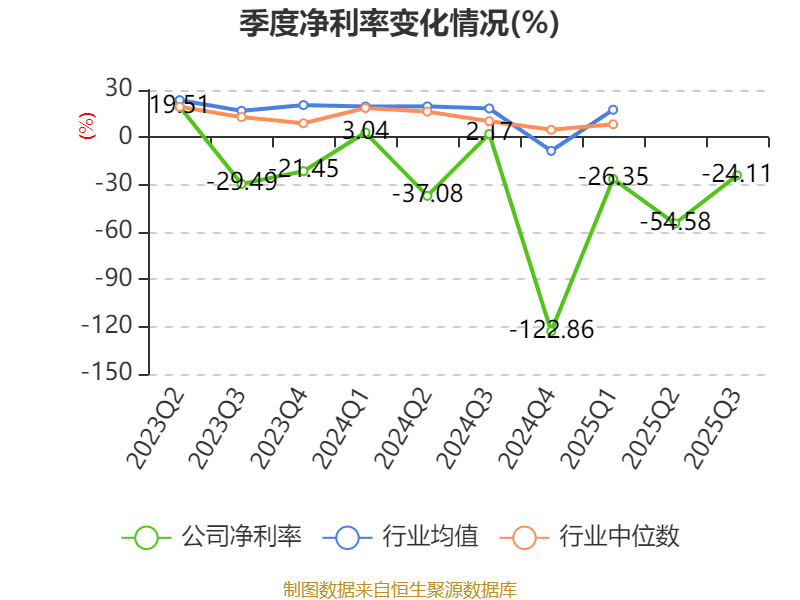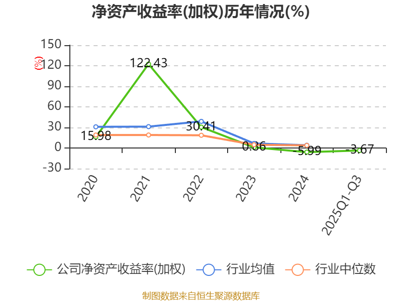 盈利能力方面, 2025年前三季度公司加权平均净资产收益率为-3.67%,同比下降2.43个百分点。公司2025年前三季度投入资本回报率为-4.26%,较上年同期下降2.54个百分点。
