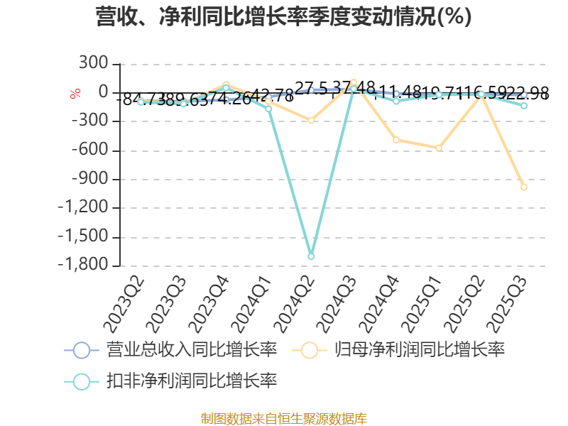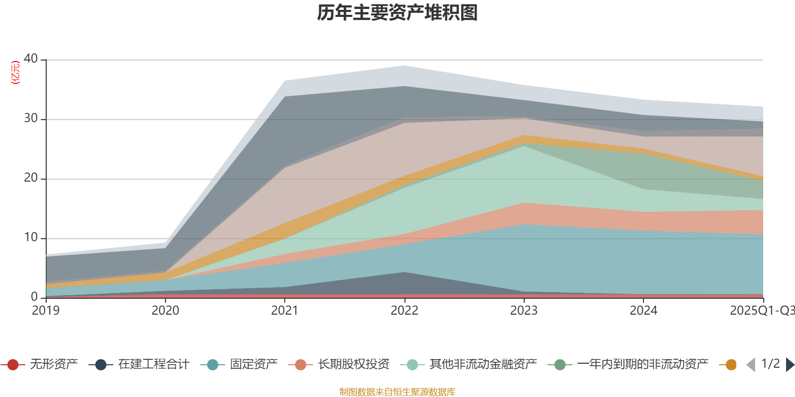 资产重大变化方面,截至2025年三季度末,公司交易性金融资产合计较上年末增加232.16%,占公司总资产比重上升14.81个百分点;一年内到期的非流动资产较上年末减少49.55%,占公司总资产比重下降8.62个百分点;其他非流动金融资产较上年末减少51.05%,占公司总资产比重下降5.61个百分点;货币资金较上年末减少55.37%,占公司总资产比重下降4.36个百分点。