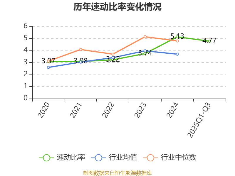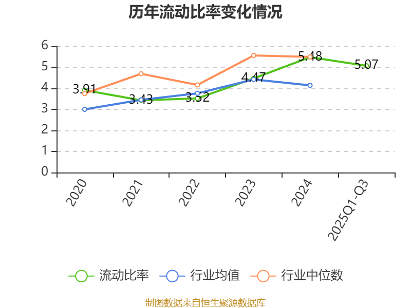 2025年前三季度,公司流动比率为5.07,速动比率为4.77。