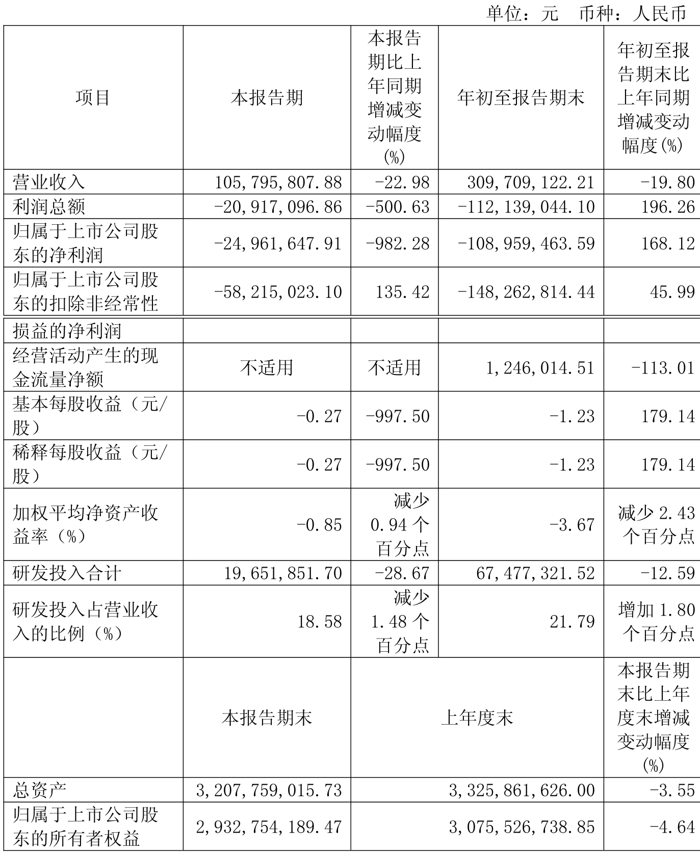 中证智能财讯热景生物(688068)10月24日披露2025年第三季度报告。前三季度公司实现营业总收入3.1亿元,同比下降19.80%;归母净利润亏损1.09亿元,上年同期亏损4063.86万元;扣非净利润亏损1.48亿元,上年同期亏损1.02亿元;经营活动产生的现金流量净额为124.6万元,上年同期为-957.5万元;报告期内,热景生物基本每股收益为-1.23元,加权平均净资产收益率为-3.67%。