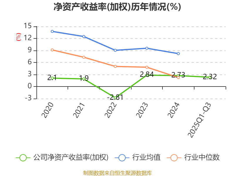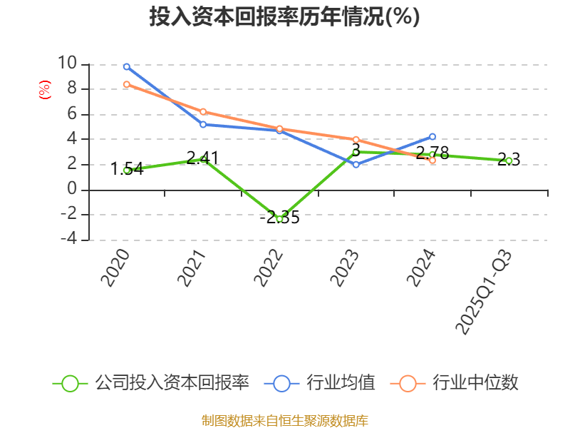 盈利能力方面, 2025年前三季度公司加权平均净资产收益率为2.32%,同比下降0.07个百分点。公司2025年前三季度投入资本回报率为2.3%,较上年同期下降0.05个百分点。