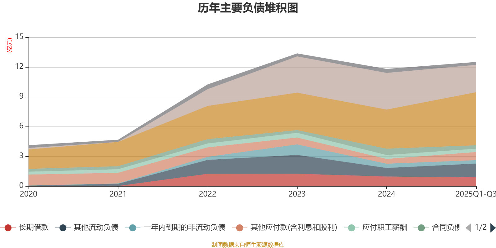 负债重大变化方面,截至2025年三季度末,公司应付票据及应付账款较上年末增加35.73%,占公司总资产比重上升3.97个百分点;短期借款较上年末减少25.34%,占公司总资产比重下降3.35个百分点;其他流动负债较上年末增加60.58%,占公司总资产比重上升1.54个百分点;其他应付款(含利息和股利)较上年末增加69.7%,占公司总资产比重上升1个百分点。